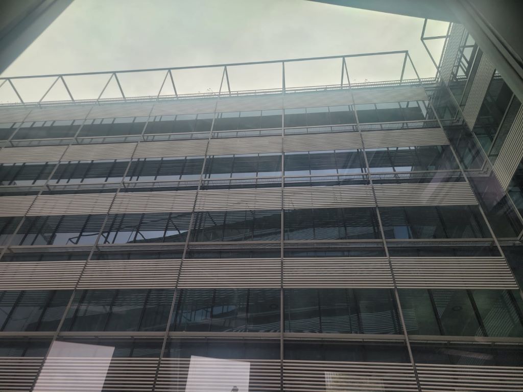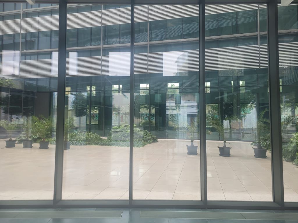 - Large glass facade