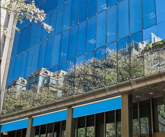 - Large glass facade